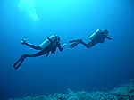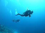 Einfach nur Fotos von TaucherInnen im Wasser. Ganz viele...