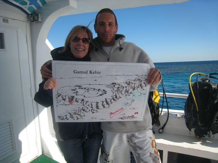 Jule und Rudi mit der Tauchplatzkarte