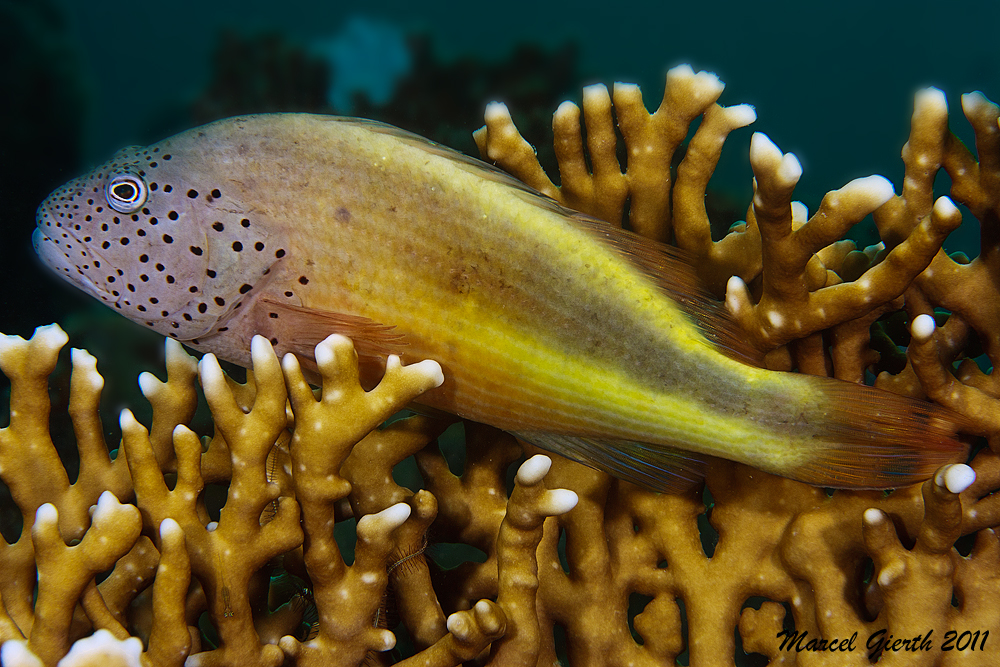 Gestreifter Korallenwächter - Paracirrhites forsteri - Blackside hawkfish |