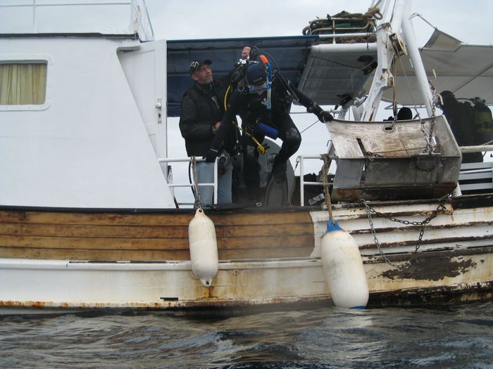 Jule auf dem Weg vom Kutter ins Wasser