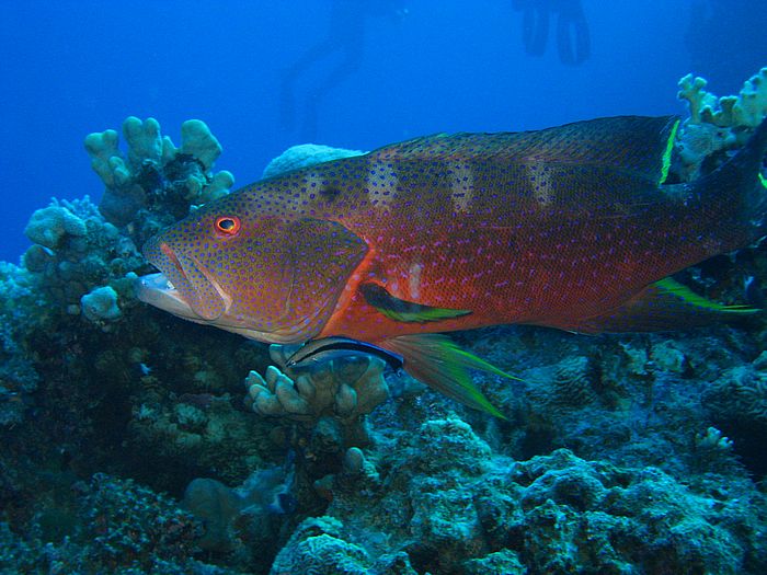 Variola louti - Mondsichel-Juwelenbarsch mit Labroides dimidiatus - Putzerlippfisch