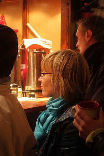 Jule holt einen heißen Apfelwein - muss man mögen. War sehr sauer *brrrr*
