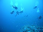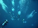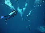 Einfach nur Fotos von TaucherInnen im Wasser. Ganz viele...