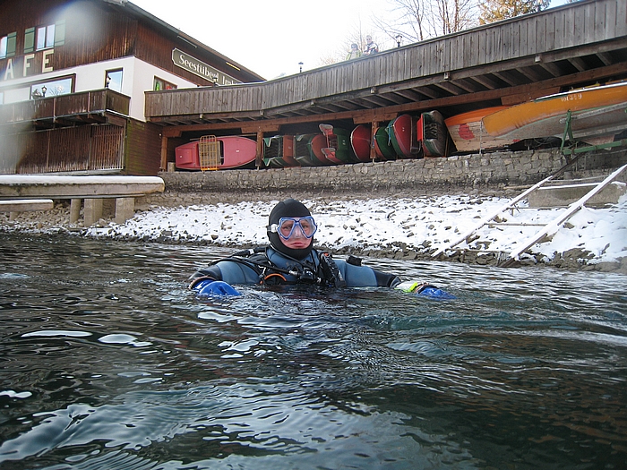 Alex ist schon im Wasser