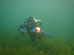 Da die Sicht im Sommer im Friedberger nicht sonderlich gut ist, haben wir es jetzt mal im Herbst ausprobiert. Die Wasserskianlage hat schon den Betrieb eingestellt und wir haben zwei Tauchgänge nur unter der Steganlage absolviert. Wir waren einfach hin und weg von den extrem vielen Fischen (Rotaugen, Rotfedern und andere Friedfische), die von einigen recht großen Barschen und vielen kapitalen Hechten belauert wurden.