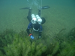 Da die Sicht im Sommer im Friedberger nicht sonderlich gut ist, haben wir es jetzt mal im Herbst ausprobiert. Die Wasserskianlage hat schon den Betrieb eingestellt und wir haben zwei Tauchgänge nur unter der Steganlage absolviert. Wir waren einfach hin und weg von den extrem vielen Fischen (Rotaugen, Rotfedern und andere Friedfische), die von einigen recht großen Barschen und vielen kapitalen Hechten belauert wurden.